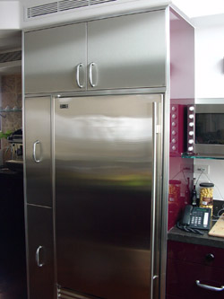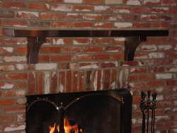 Custom stainless steel mantel corbels for den fireplace adjacent kitchen for Mesa Verde home.